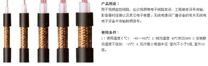 同轴电缆SYWV75-5系列物理发泡聚乙烯绝缘同轴电缆外导体采用编织网(双屏蔽或四屏蔽)主要规格有48网,64网,96网,128网,主要适用于CATV分支线路,主要忧点具有屏蔽性能好,机械强度高,衰减低,回波性能好,密封防潮等优良特性。
